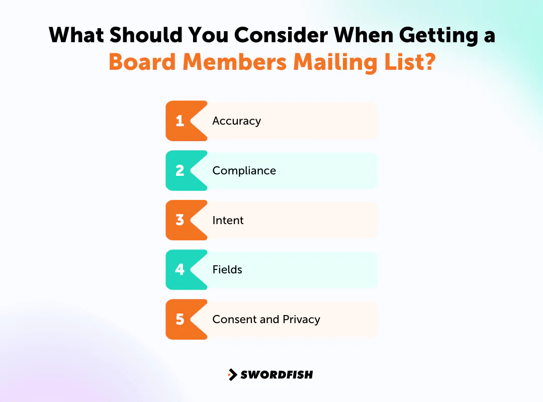 Choosing the right board members’ mailing list is important for your sales and marketing efforts. Here’s what to keep in mind to ensure you make the most informed decision: