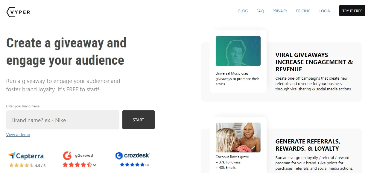 - Vyper – Best for generating leads through creating viral social media competitions and giveaways.