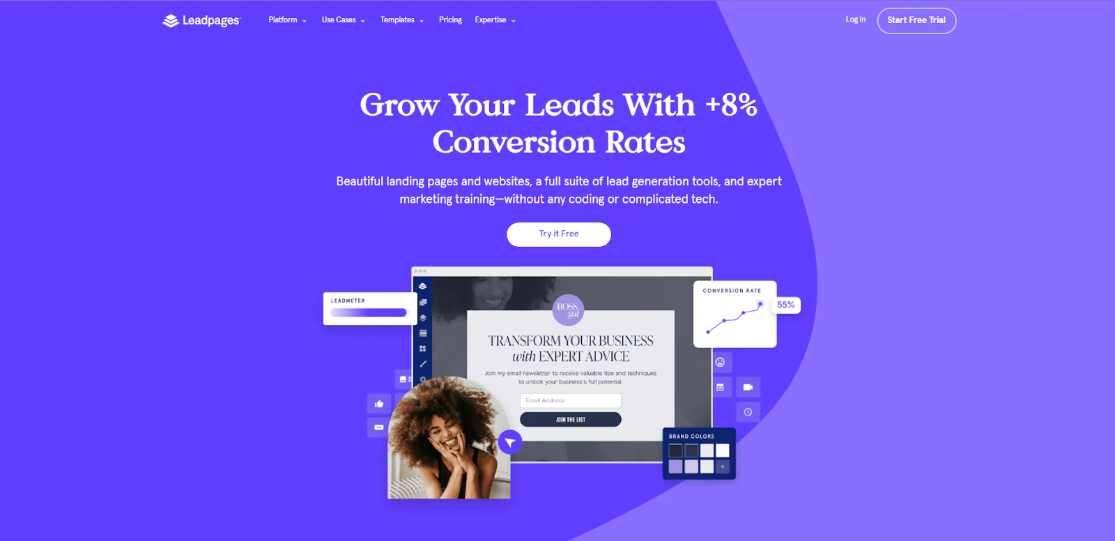 LeadPages crafts tailored landing pages for distinct audiences and syncs with software to channel leads into your CRM. It is a conversion-focused marketing platform that empowers entrepreneurs and marketers to transform clicks into customers while minimizing technical complexities.