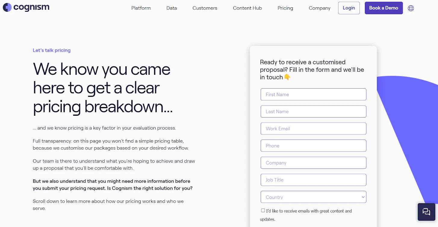 While they does not offer a transparent pricing plan, they provide customized Cognism pricing plan options tailored to your business needs. This personalized approach ensures that you only pay for the required services, allowing you to optimize your budget and maximize your ROI.