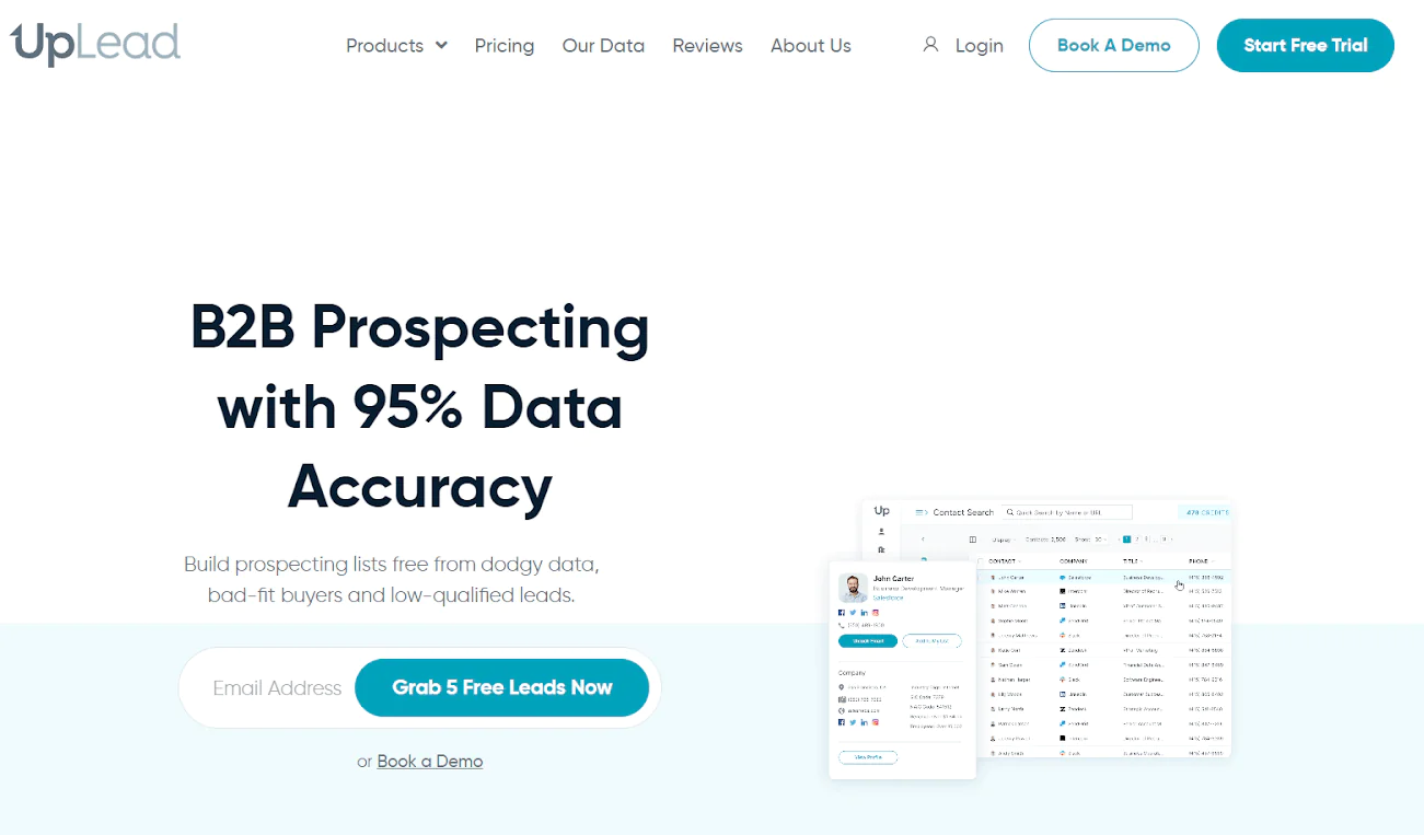 To get started, UpLead offers a free trial where you can test out their features. They also have a variety of pricing plans available, including a free option and monthly plans starting at $99.