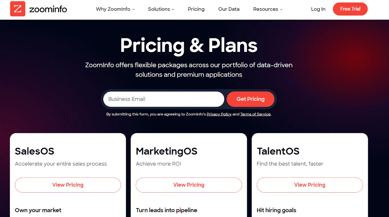 ZoomInfo offers a range of pricing plans to meet your needs and budget, so you can select a pricing plan according to the needs of your business. If you’re interested in ZoomInfo, you can sign up for a free trial on their website. While they do not provide detailed pricing information on their website, you can enter your email address to receive access to their pricing plans.