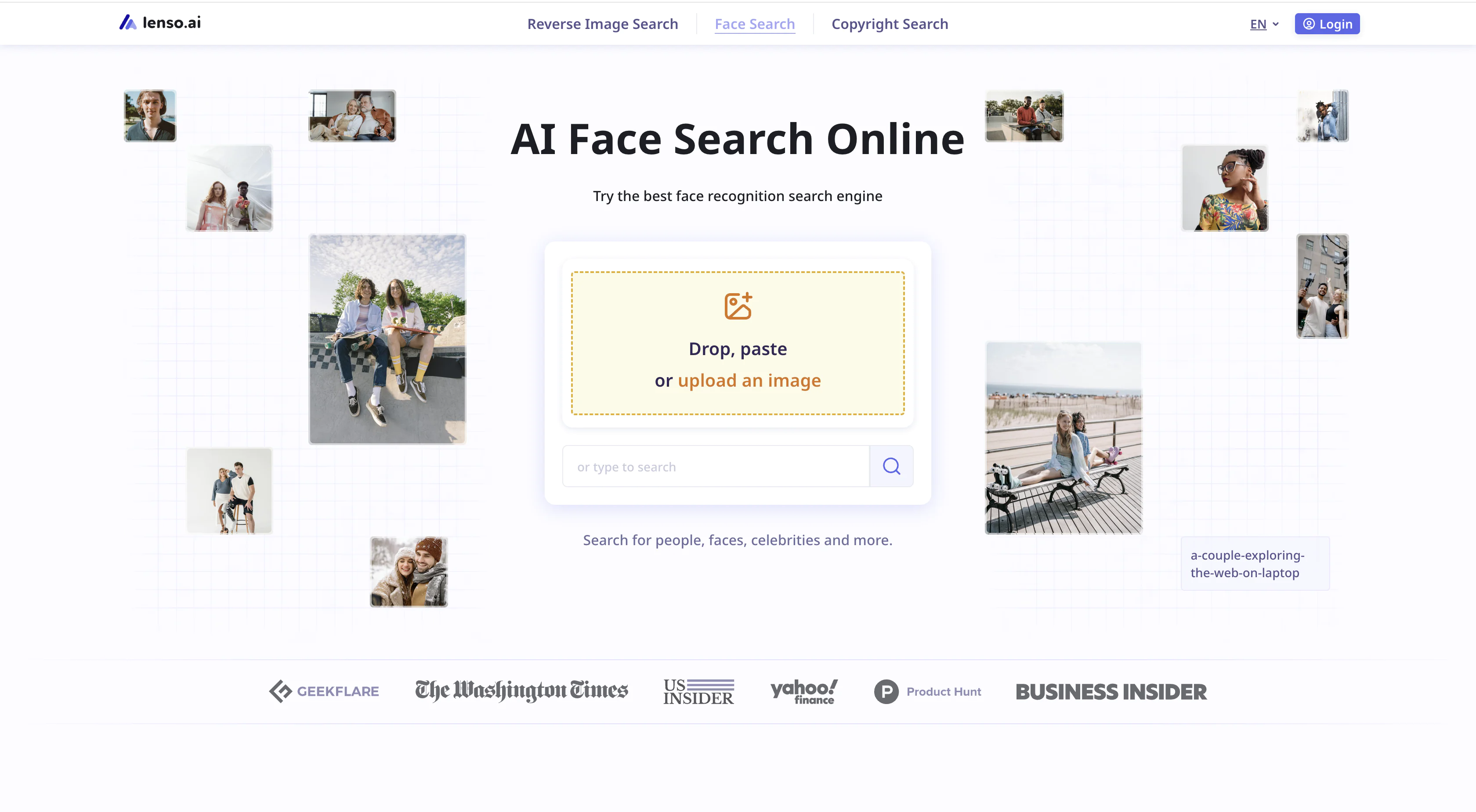 • Lenso.ai: Best for reverse face search; search for people by image.