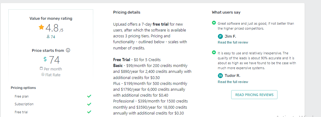 UpLead Reviews says that it’s well-liked by many of its users, with many praising its easy-to-use interface and excellent customer support. However, some believe it could benefit from offering a wider range of tools.