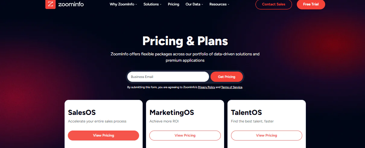 ZoomInfo, on the other hand, structures its pricing around three main subscription levels: