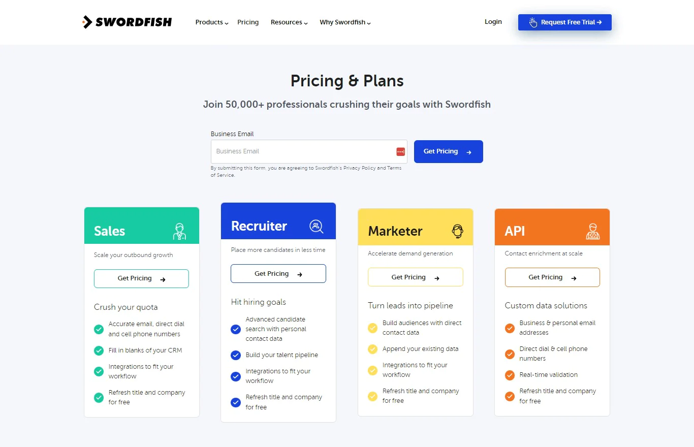 Swordfish uses a unique cell phone number and proprietary verification system to make sure the contact info is accurate. With access to over 3.5 billion data profiles, Swordfish AI’s database depth is unparalleled. Beyond mere data collection, it uses machine learning and premium data vendors for cross-checking and validation.