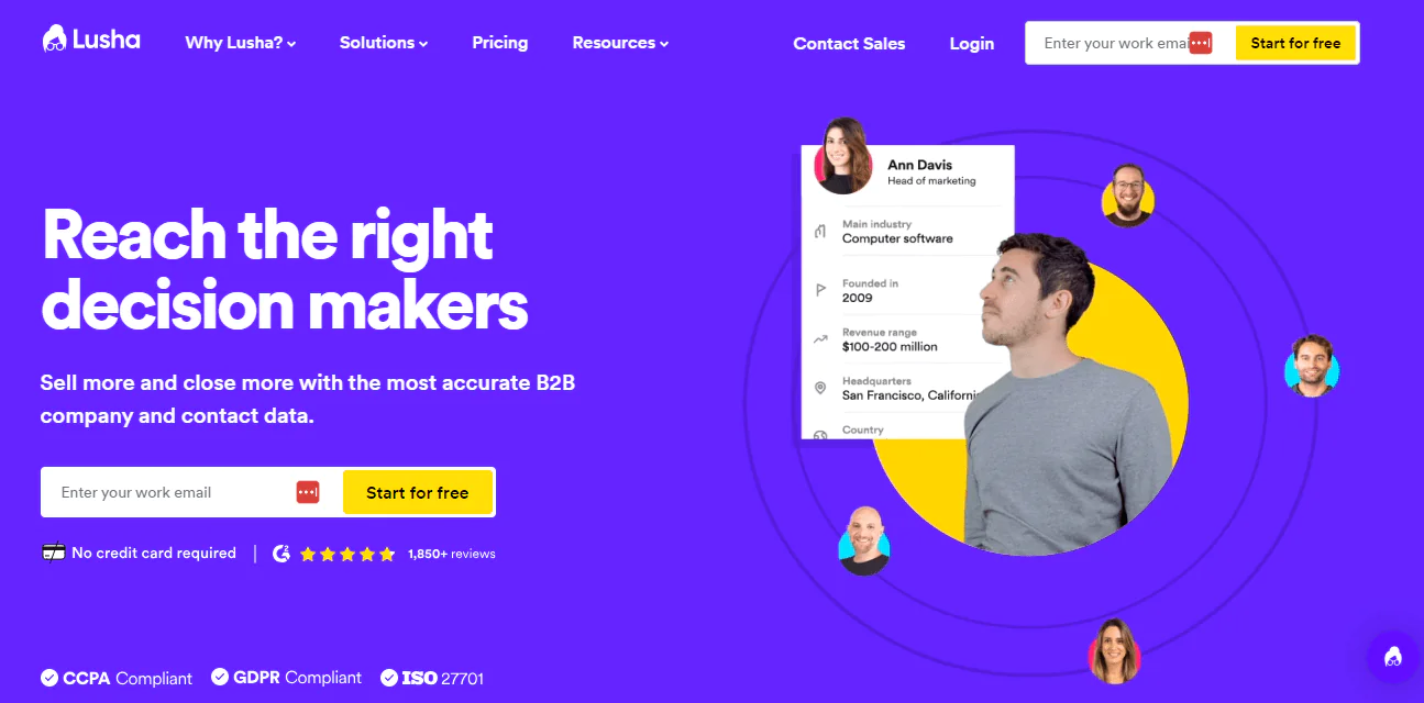 Other than DiscoverOrg, there are a lot of tools out there. There are a few noteworthy competitors, like Lusha, UpLead, and Clearbit.
