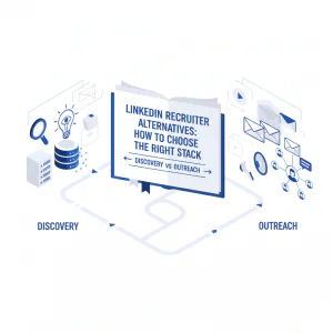A Head of Talent guide to LinkedIn Recruiter alternatives using a discovery vs outreach framework, with a diagnostic table, weighted checklist, and copy/paste outreach templates focused on placement speed and candidate experience.